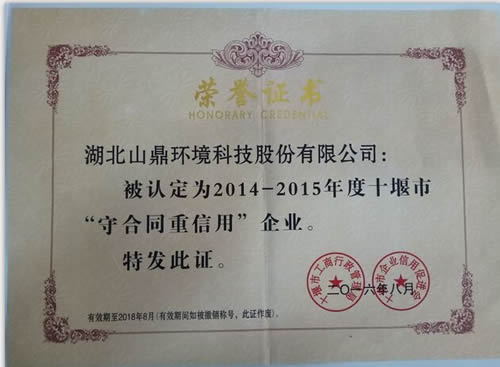 祝贺天行中国手机网页版获评由十堰市工商行政管理局、十堰市企业信用促进会颁发的(2014—2015年度)“守合同重信用”企业荣誉证书。
